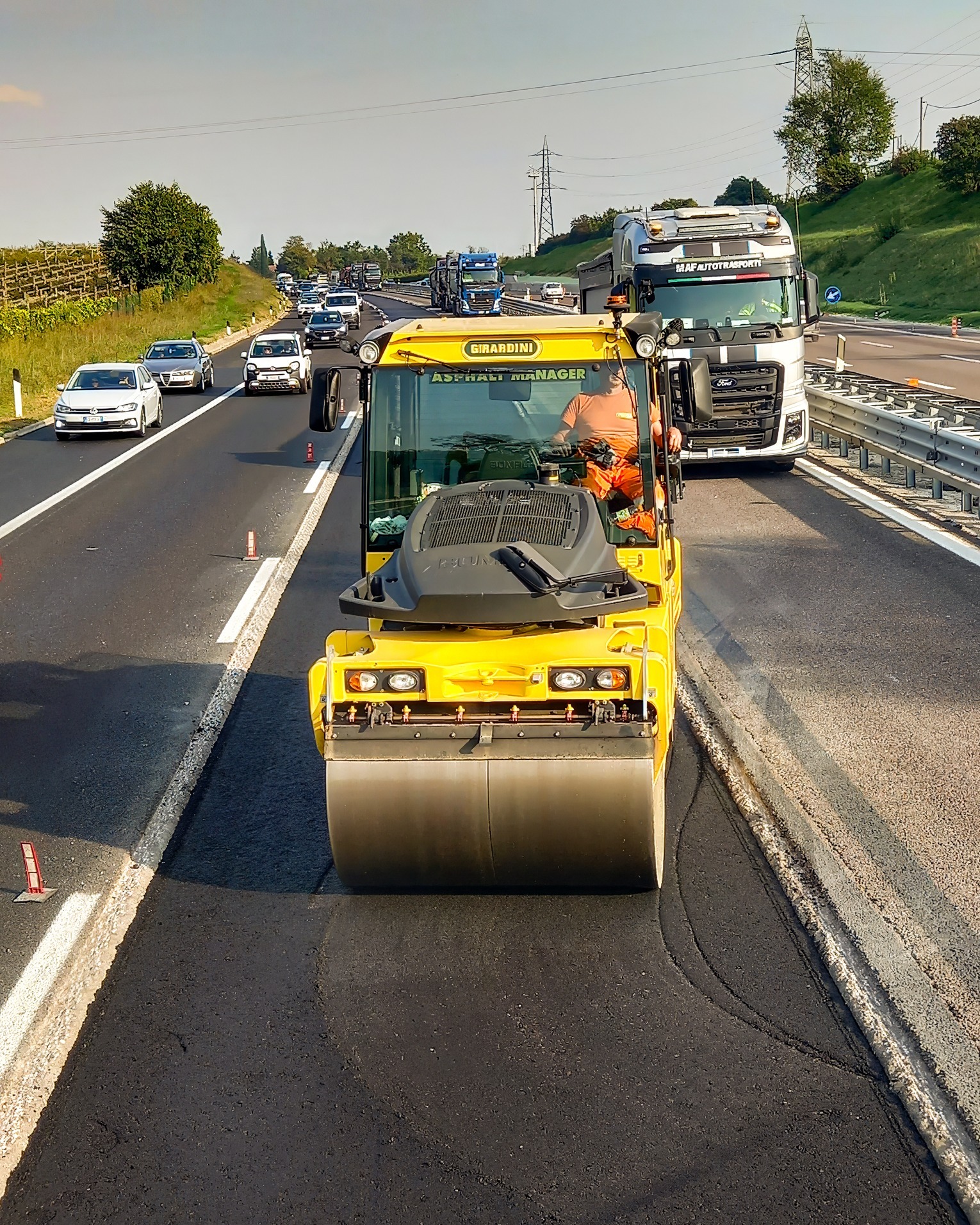 Proseguono i lavori della Costruzioni Generali Girardini sull’Autostrada A4 tra i caselli di Sommacampagna e Peschiera del Garda, in direzione Milano.