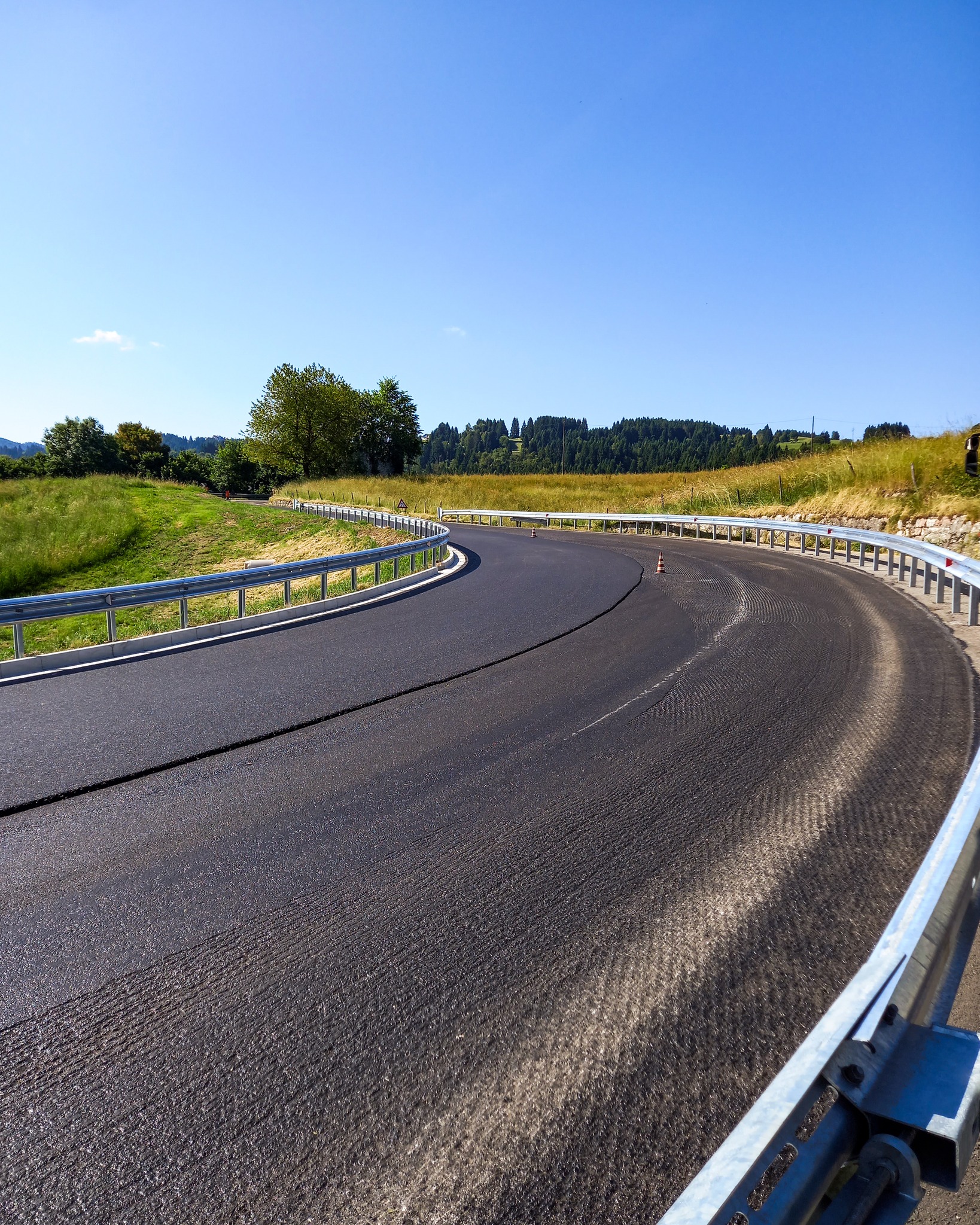 L’andamento scosceso del terreno ha richiesto in alcuni tratti interventi specialistici e l’utilizzo di tecnologie innovative per le opere di contenimento, mentre i lavori di asfaltatura, fresatura, compattazione dei rilevati e posa dei sottofondi vengono eseguiti direttamente dalle nostre squadre.