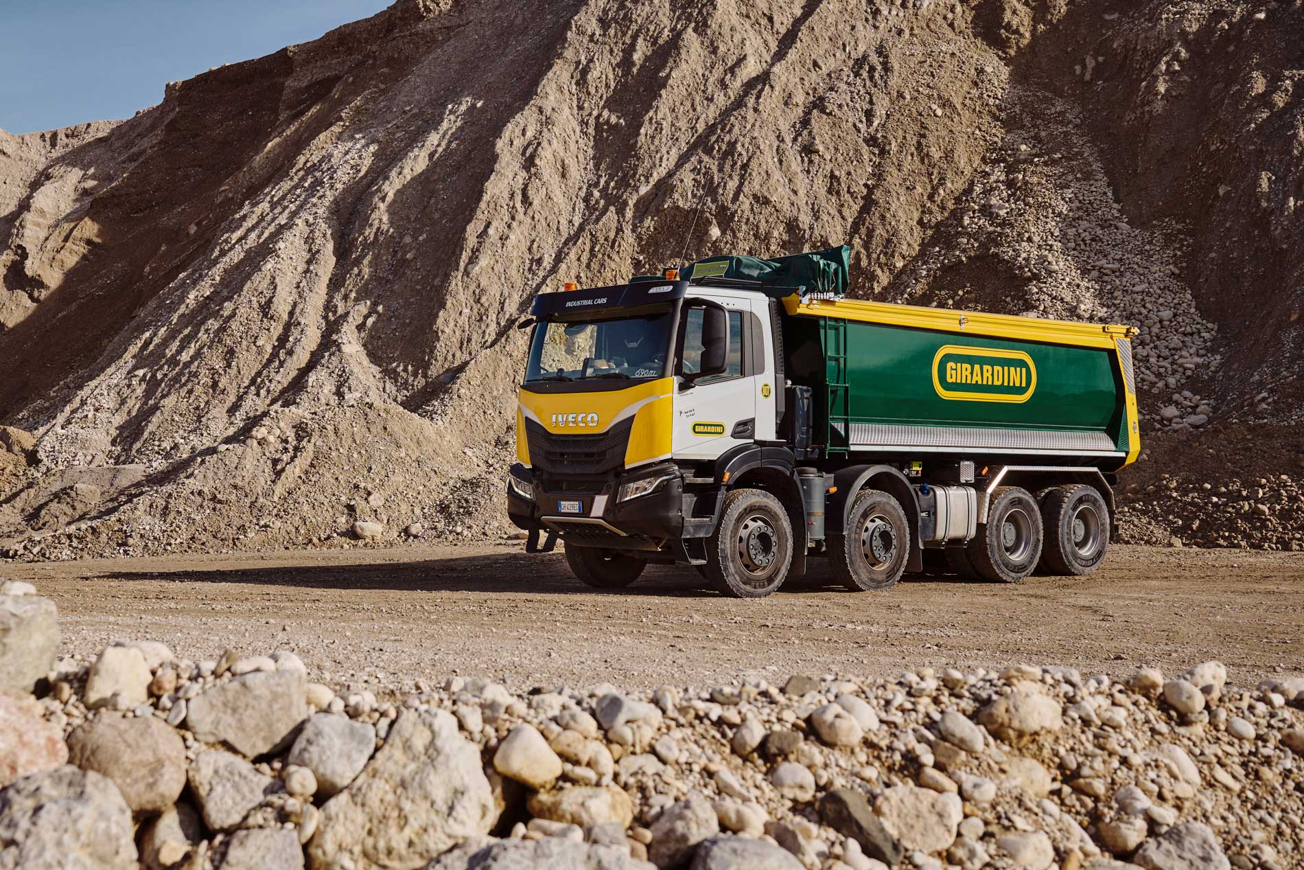 Mezzo d’opera Iveco T-Way 510, dotato di maggior portata, può essere utilizzato anche con vasca per il trasporto di materiale.