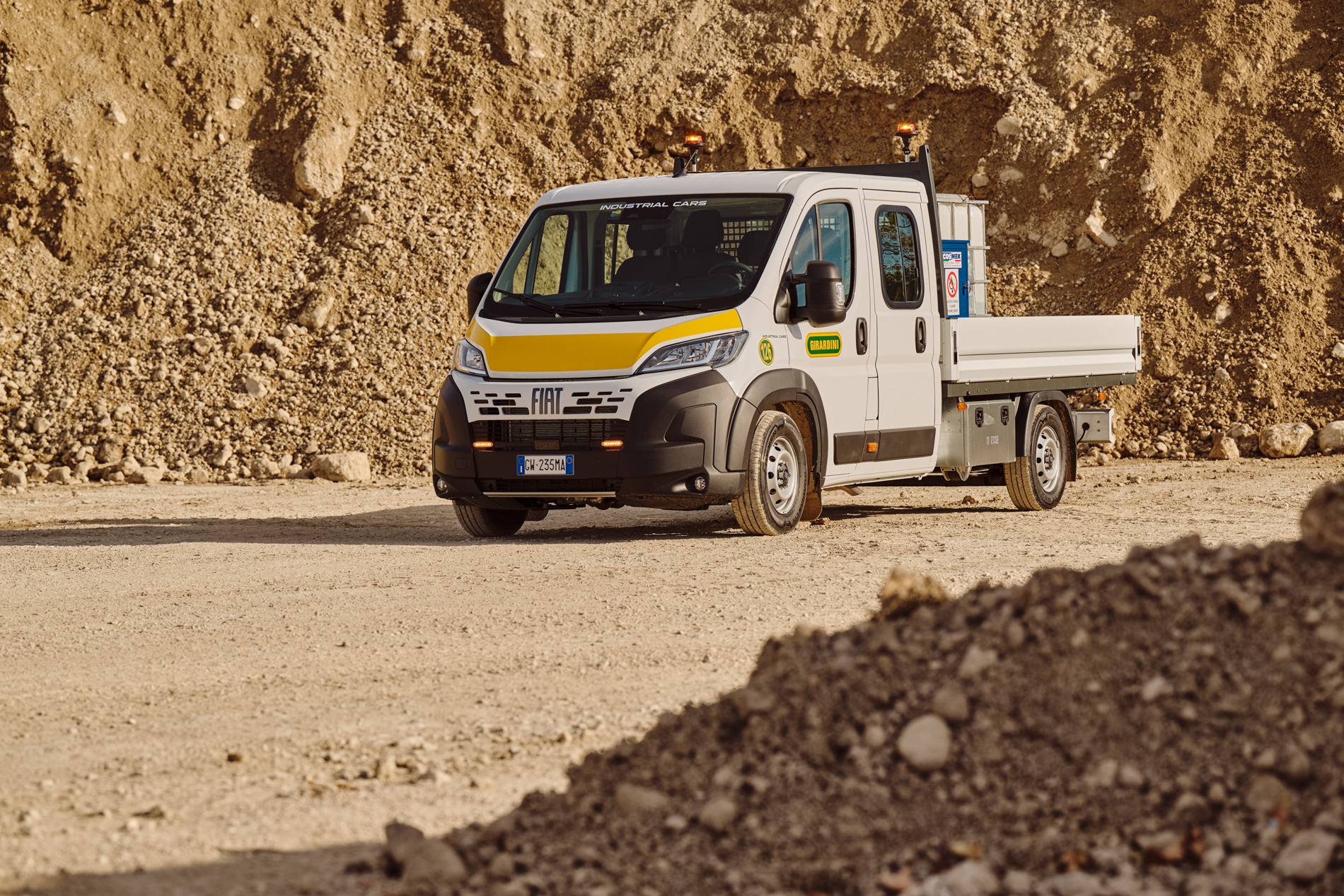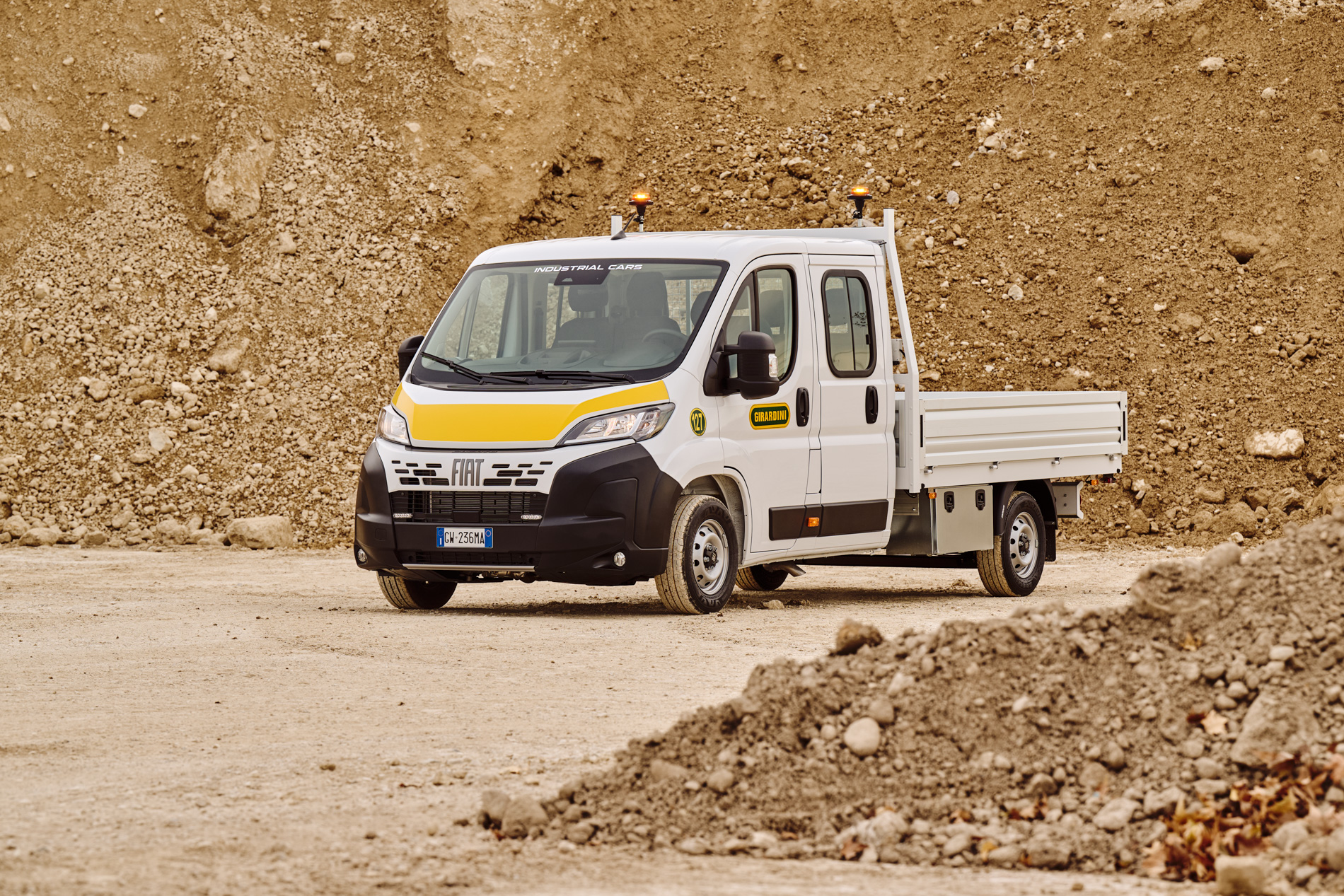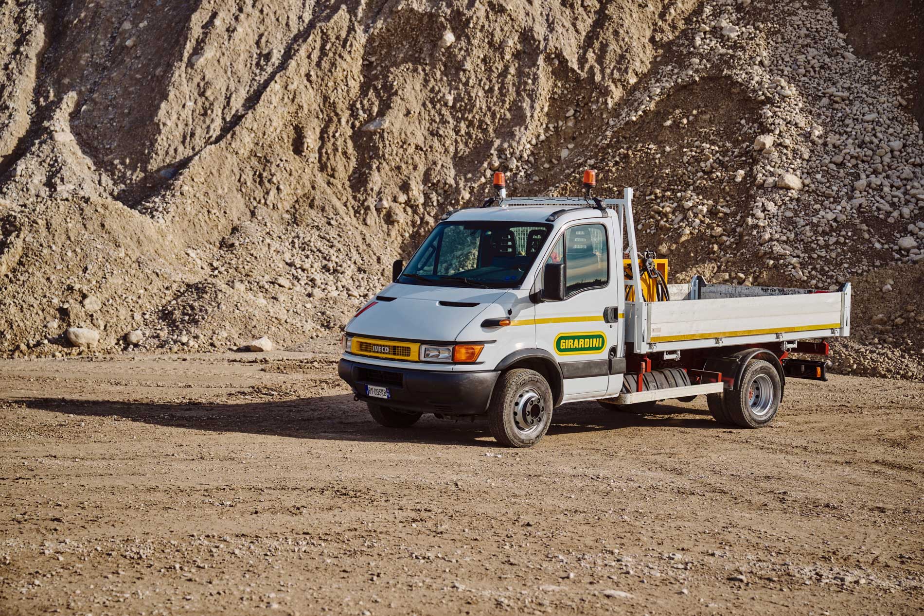 Furgoni attrezzati con cassone ribaltabile trilaterale. Vengono utilizzati per approvvigionare di acqua e gasolio il cantiere e per il trasporto della segnaletica e degli attrezzi.